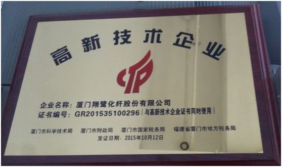 恭賀我司通過(guò)廈門(mén)市2015年第一批高新技術(shù)企業(yè)的認(rèn)定自2015年3月至今,經(jīng)過(guò)市省國(guó)家層層遞進(jìn)的多方面審核,及公司各部門(mén)的積極配合,在多次完善資料后,我司通過(guò)高新技術(shù)企業(yè)的認(rèn)定。在此也感謝公司領(lǐng)導(dǎo)的努力和各部門(mén)的配合和付出。 高新技術(shù)企業(yè)資格的認(rèn)定,進(jìn)一步肯定了我司的技術(shù)開(kāi)發(fā)能力和自主創(chuàng)新、持續(xù)創(chuàng)新的能力,同時(shí)也進(jìn)一步激發(fā)了企業(yè)自主創(chuàng)新的熱情,為公司面對(duì)激烈的競(jìng)爭(zhēng)和多元化的市場(chǎng)變化格局帶來(lái)了新的機(jī)遇,為我司的市場(chǎng)競(jìng)爭(zhēng)提供了強(qiáng)有力的支持。 我公司將再接再勵(lì),充分發(fā)揮高新技術(shù)企業(yè)的帶動(dòng)作用,提升企業(yè)和產(chǎn)品的競(jìng)爭(zhēng)力,我司一直在努力,我們一直都是世界優(yōu)質(zhì)品牌的化纖供應(yīng)者。