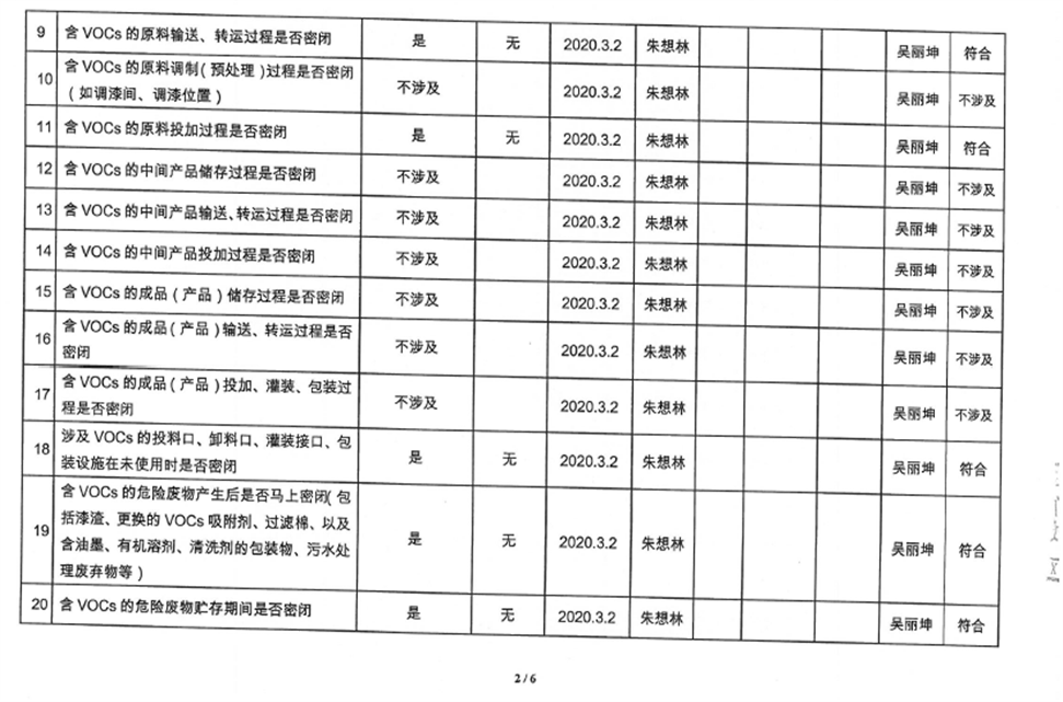 廈門市揮發(fā)性有機(jī)物污染防治企業(yè)自查表(2020年第二季度)