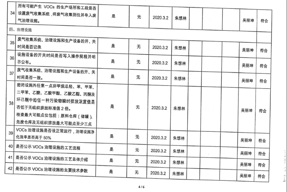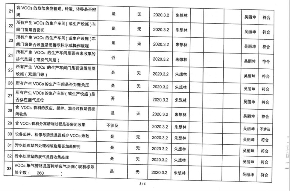 廈門市揮發(fā)性有機(jī)物污染防治企業(yè)自查表(2020年第一季度)